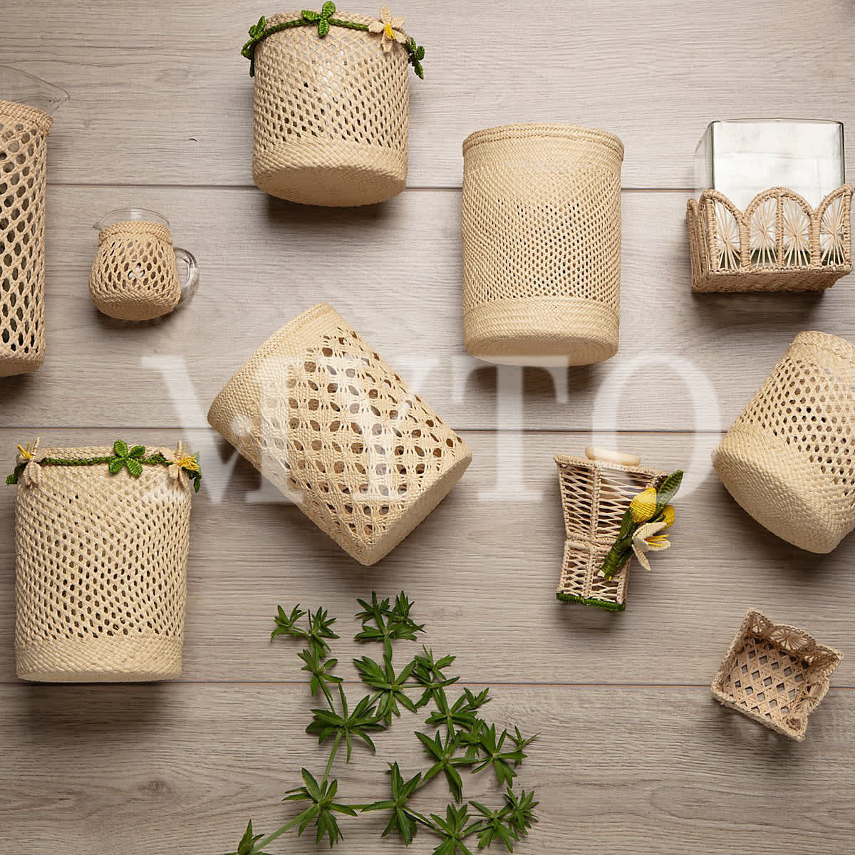 A smaller version of the blossomed container, this piece maintains the intricate weaving and floral accents. Perfect for holding small items or simply as a decorative piece, it adds a subtle, organic charm to any space.