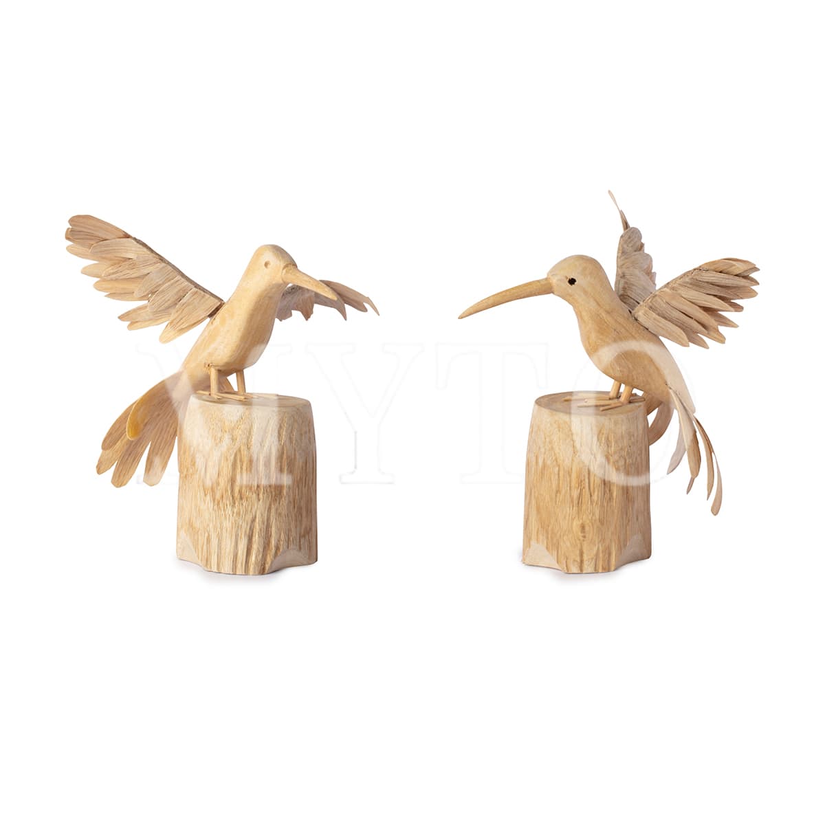 This beautifully crafted wooden hummingbird figurine captures the delicate grace of the bird in flight. Its detailed carving and natural finish make it a delightful decorative piece. It is 100% drift wood and even the feathers are a single wood shaving, all carefully crafted.