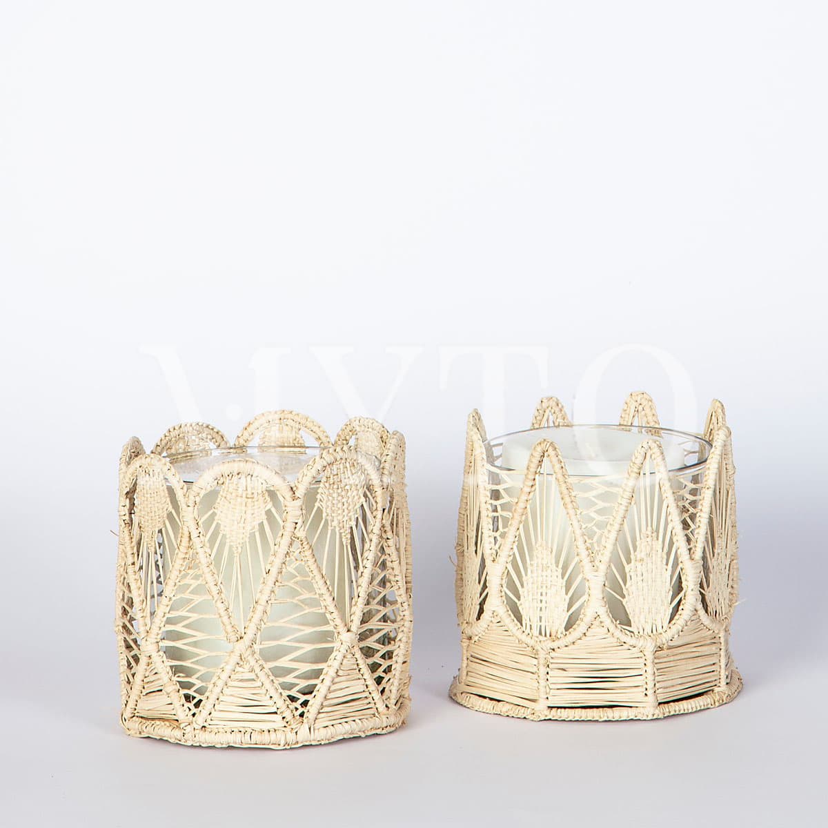 This container is perfect for a candle or to make a beautiful flower arrangement! It is handmade in Iraca covered wire structure with a design that is inpired in the flower that grow wild in the Atlantic Coast of Colombia