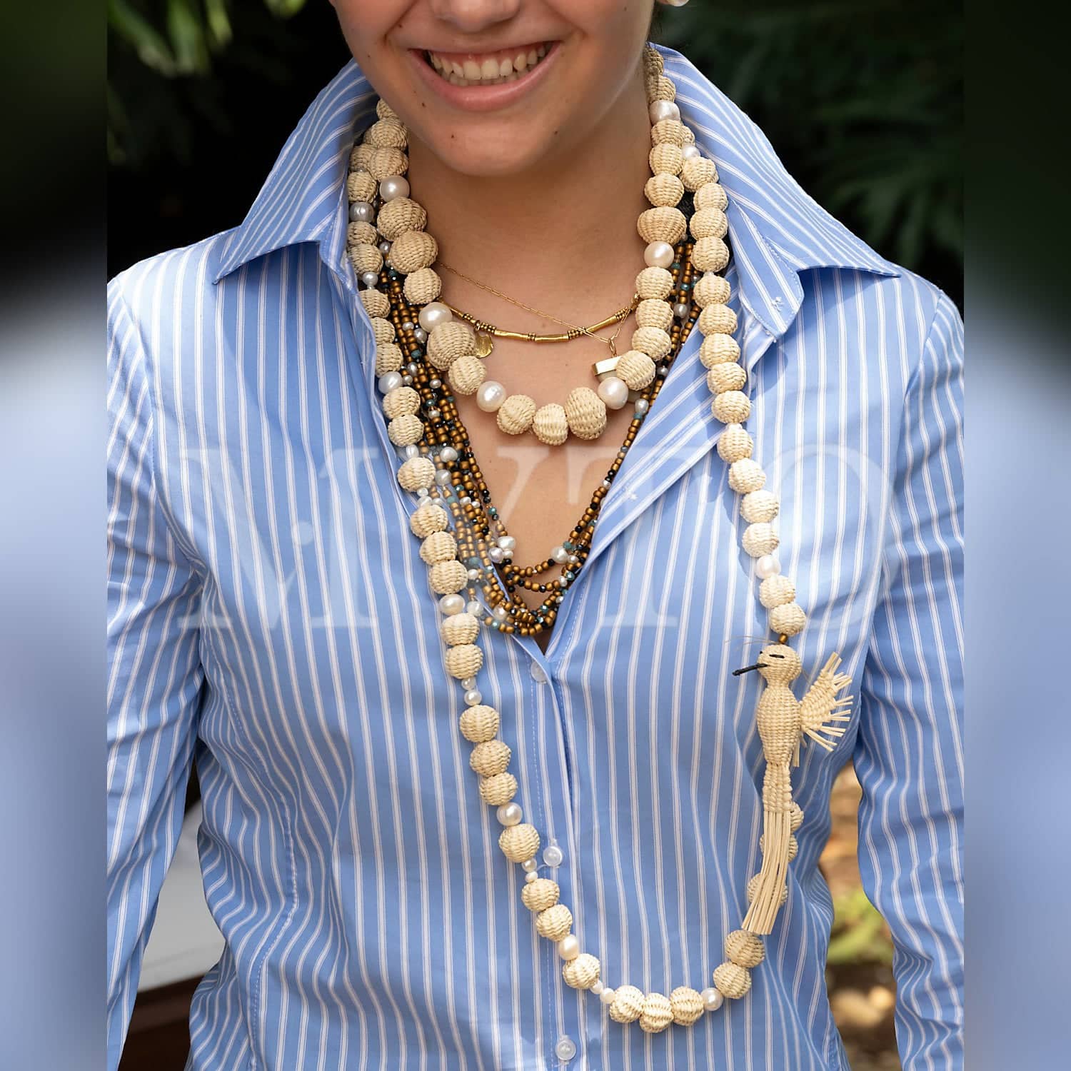 A delicate combination of hand made iraca balls and pearls with a humming bird made in iraca fiber. Its a beautiful necklace that can will certainly enhance any outfit