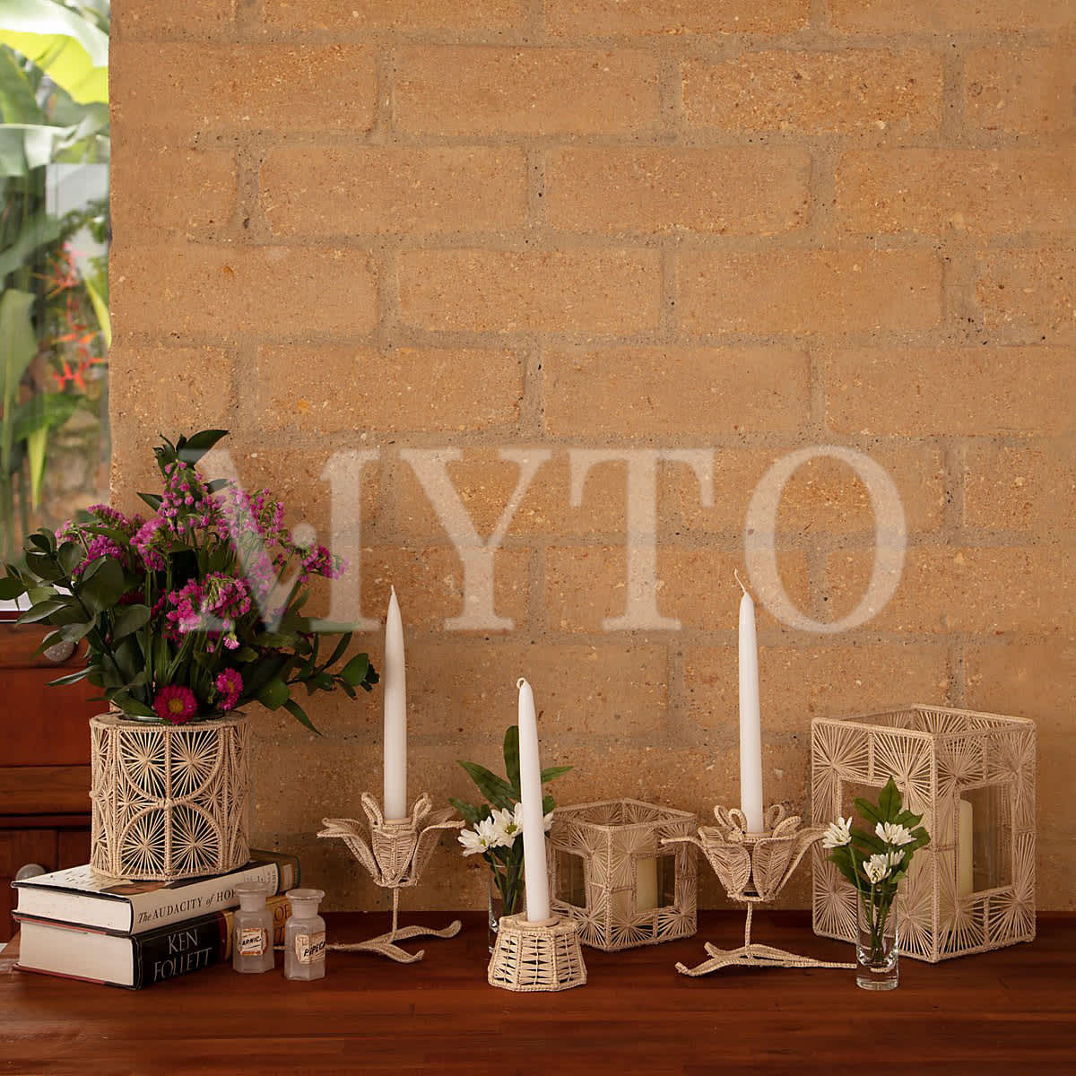 A charming candle holder designed to resemble a blooming flower. Crafted in iraca fiber with wire structure, the volumes create a delicate and decorative piece. This piece comes with a ceramic insert for the candle. The Lily Candel holder can be used in a set table to enhance the lighting and delight the setting or on table on its on as a decoration.