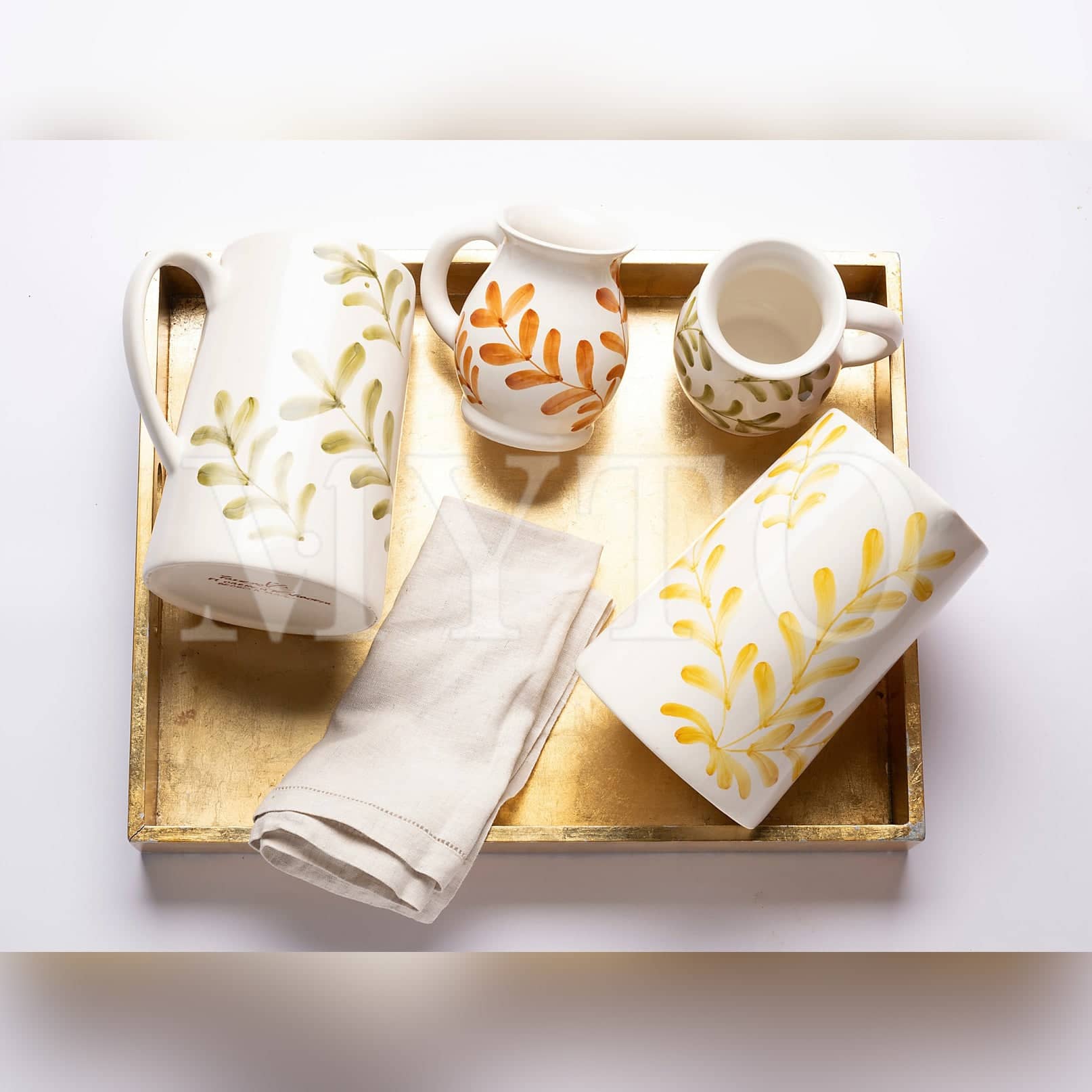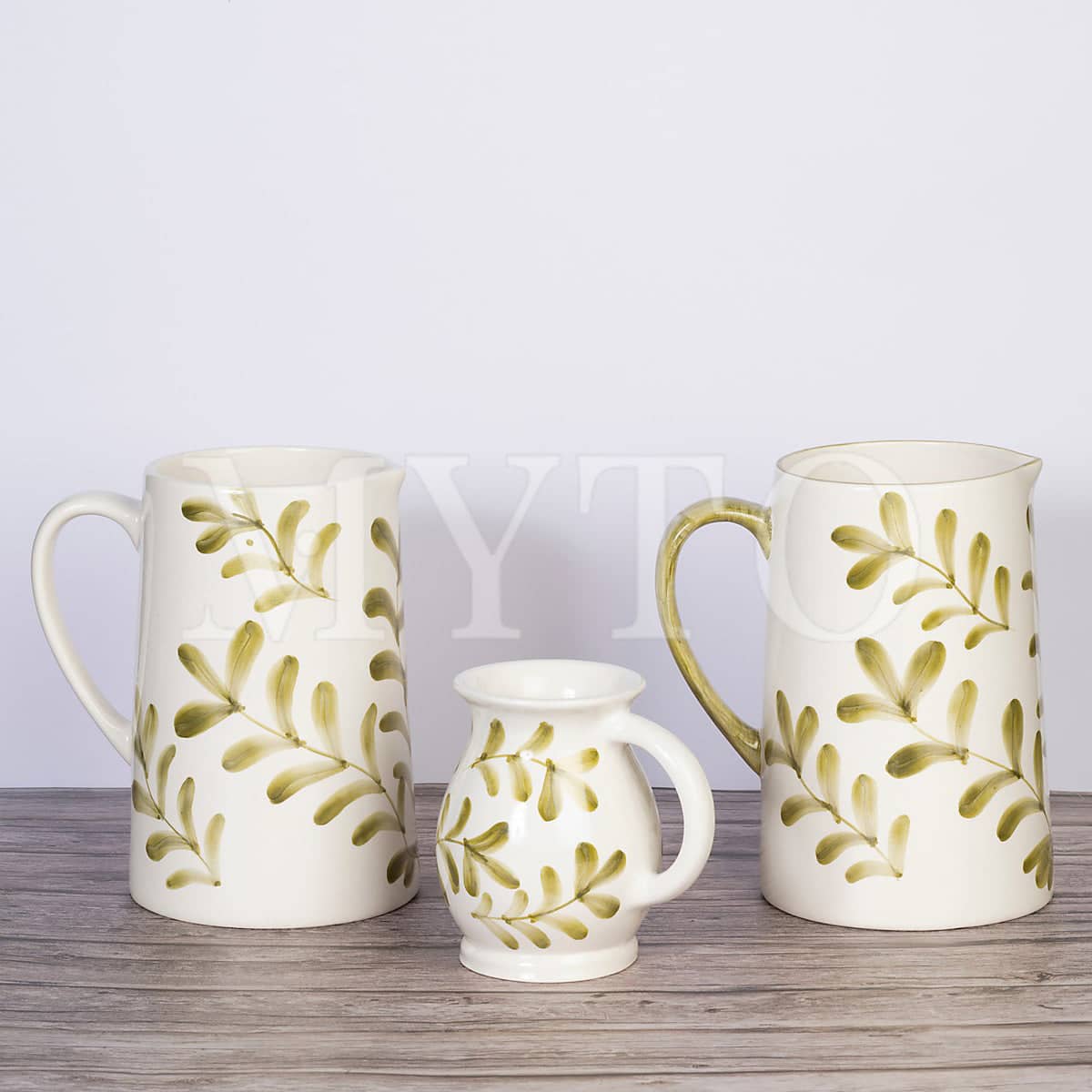 This pitchers are hand painted in a small town in Colombia. Their size is perfect to use as creames, or to take any sauce from meat sauce to vinagrettes, to your table or buffet.